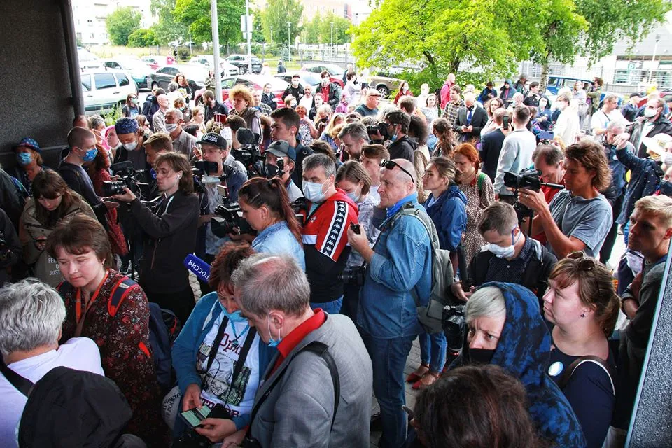 Наше ожидание приговора по второму процессу над Юрием Дмитриевым на этот раз проходило на улице перед судом. Всем журналистам накануне прислали информацию, что доступ в здание суда закрыт из-за пандемии коронавируса. И пресса, и обычные граждане, и люди в форме и в штатском ждали во дворе. Один товарищ активно снимал всех нас на видео, и я дважды его сфотографировала. Он тут же подошел ко мне и приказал: «Сотрите два последних снимка!» — «Но почему?!» — «Сотрите — и всё». — «Ну, вы же нас тоже снимали. Представьтесь: кто вы?» Товарищ назвать себя не захотел и отошел.