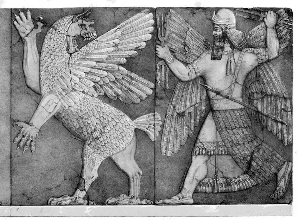 Основной фабулой этой системы является борьба двух миров: верхнего, мира живых, и нижнего, мира мертвых. Верхний мир — это период первого полугодия календаря, от весны до начала осени, а нижний мир — второе полугодие. В этой фабуле четыре основных сюжета. Весна — это время абсолютного триумфа мира живых над миром мертвых, что выражается в победе молодого героя над хаотическими существами, будь то победа Нинурты над Асагом у шумеров или Мардука над Тиамат у вавилонян. Лето — это время активного проникновения сил верхнего мира в нижний мир. Герои совершают путешествия к мертвым или попадают туда силой судьбы (как Гильгамеш или Думузи). Осень — это время равновесия между мирами. Зима — это наступление сил нижнего мира и временное поглощение мира верхнего.