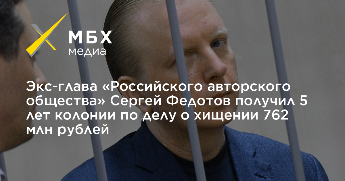 Экс-глава «Российского авторского общества» Сергей Федотов получил 5 лет колонии по делу о хищении 762 млн рублей