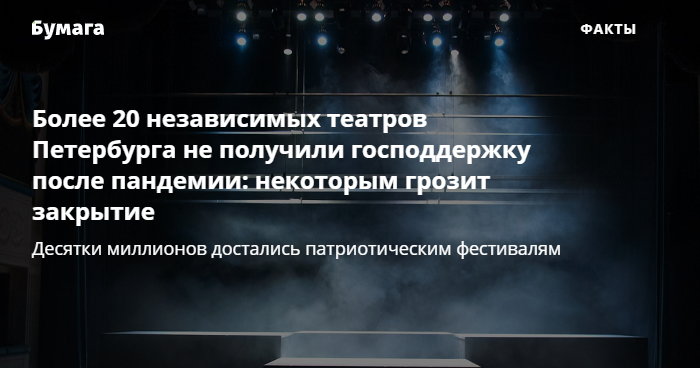 Представители театров предупредили Беглова о возможном закрытии, если им не предоставят субсидии. Их поддержали критики