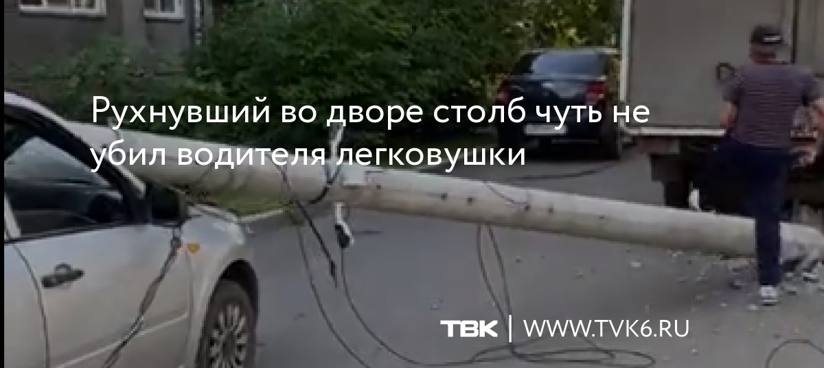 Рухнувший во дворе столб чуть не убил водителя легковушки