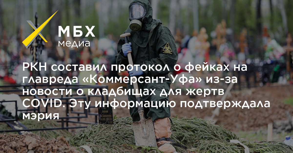 РКН составил протокол о фейках на главреда «Коммерсант-Уфа» из-за новости о кладбищах для жертв COVID. Эту информацию подтверждала мэрия