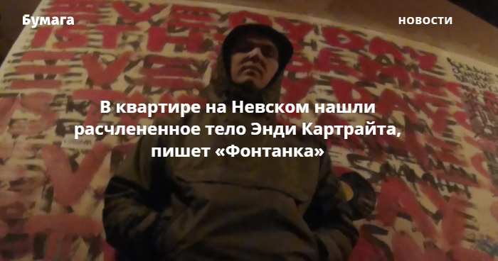 В квартире на Невском проспекте, 134 нашли расчлененное тело украинского рэп-исполнителя и участника Versus Battle Энди Картрайта. Об этом сообщает «Фонтанка».