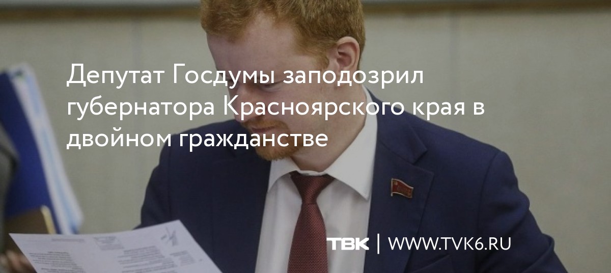 Депутат Госдумы заподозрил губернатора Красноярского края в двойном гражданстве