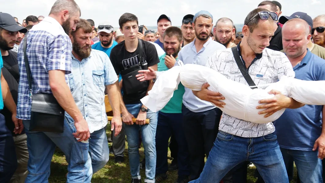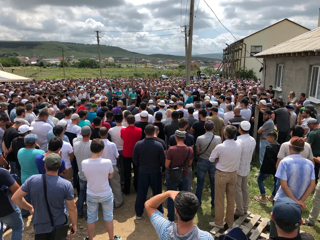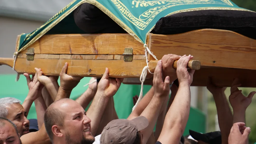 Несколько тысяч мужчин в фесках и тюбетейках стоят на поле и тихо переговариваются. Небо затянуто облаками, но жарко. Вокруг — недостроенные неоштукатуренные дома, много машин. Поселок Строгановка на окраине Симферополя: несколько тысяч жителей, большинство — крымские татары. Сейчас на поле больше людей, чем проживает в поселке. Женщины — отдельно. Люди собрались на дженазе, мусульманских похоронах, трехлетнего Мусы Сулейманова. Утром его привезли после судмедэкспертизы, Эрнест Бектемиров вынес из машины маленький, завернутый в детское пушистое одеяло сверток.