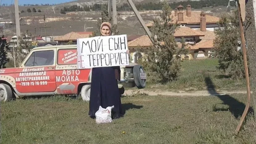 После ареста старшего сына она вышла с одиночным пикетом — стояла у края дороги с плакатом «Мой сын — не террорист».
