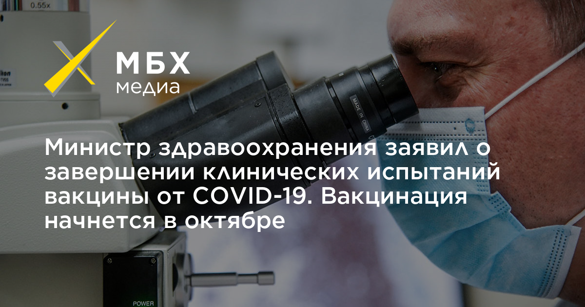 Министр здравоохранения заявил о завершении клинических испытаний вакцины от COVID-19. Вакцинация начнется в октябре
