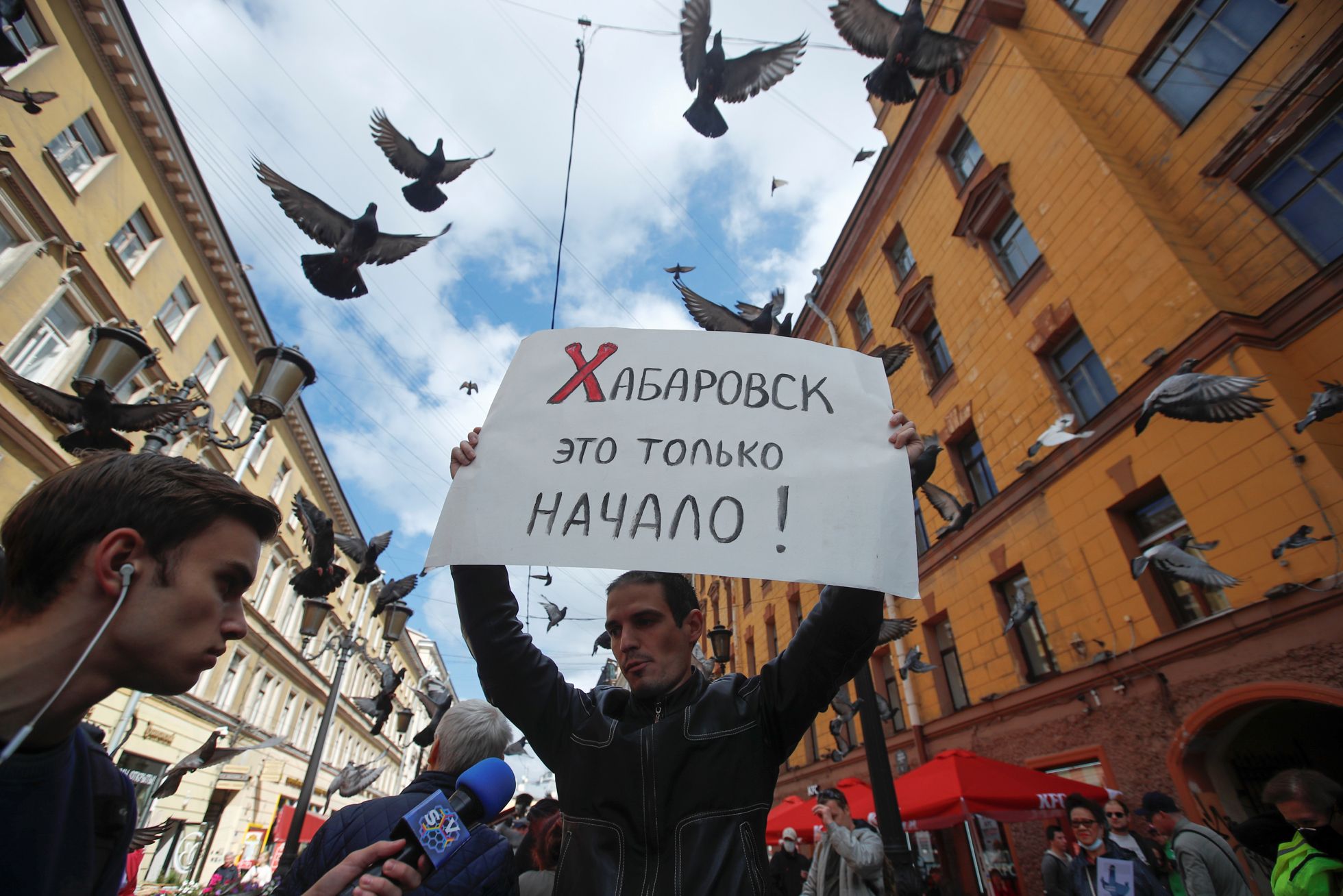 Акция солидарности с жителями Хабаровска в Санкт-Петербурге. Фотография