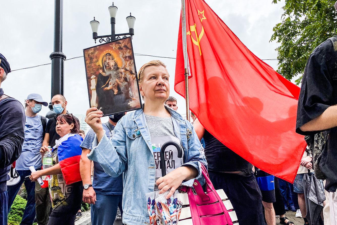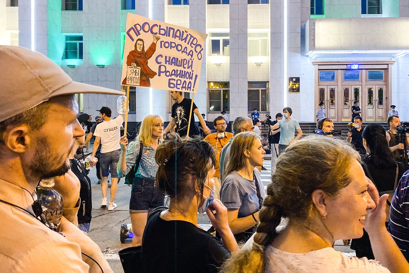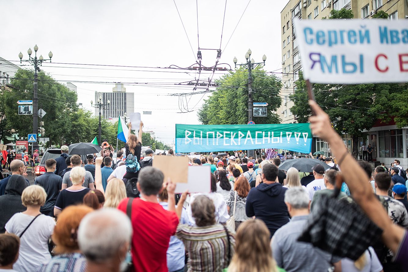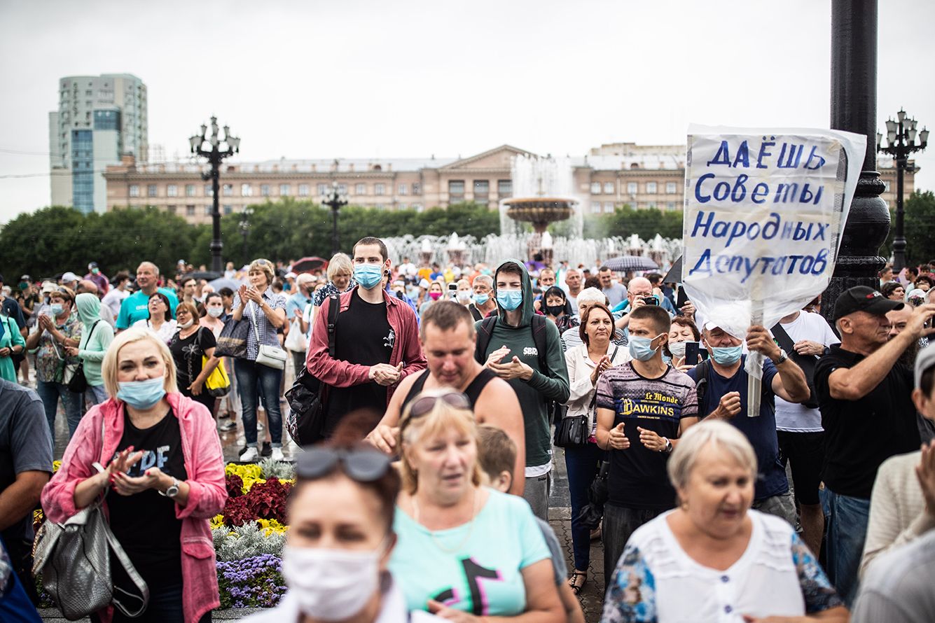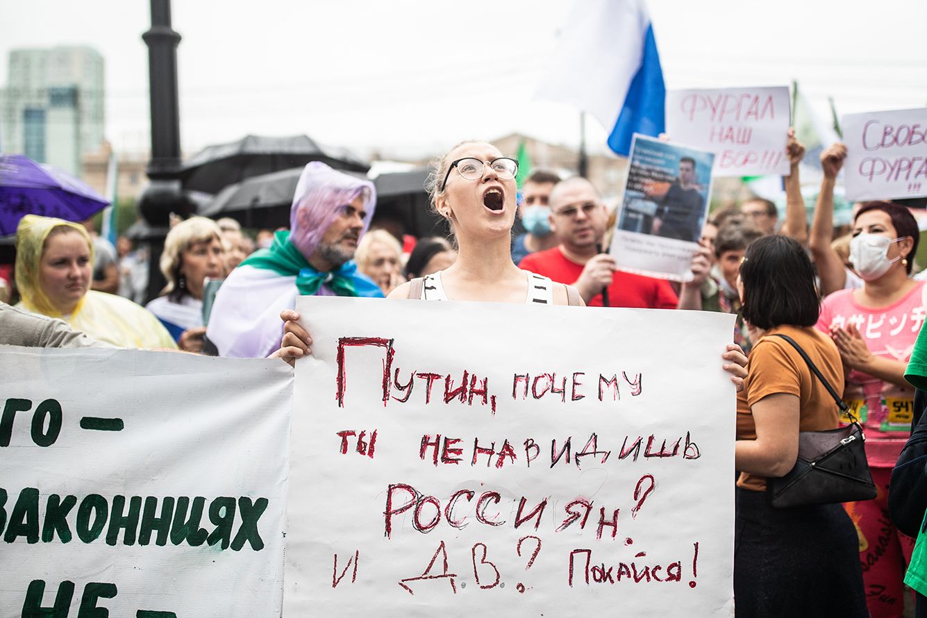 В Хабаровске 1 августа состоялась 22-я по счету акция в поддержку бывшего губернатора Сергея Фургала, обвиняемого в организации убийств. На акции, по оценке «Коммерсанта», было не меньше людей, чем неделю и две недели назад — несмотря на то что в первой половине дня в городе шел сильный дождь. Мэрия Хабаровская заявила, что на акцию вышли 3,5 тысячи человек (неделей ранее власти говорили о 6,5 тысячах участников; независимые СМИ давали оценки в 15-50 тысяч), выразив уверенность, что людей стало меньше из-за «появления на акциях поддержки представителей несистемной оппозиции и людей, которые используют площадку акции в собственных политических целях».