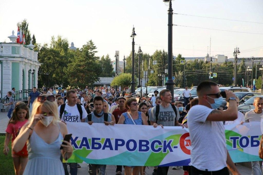 Шествие в поддержку хабаровчан организовали в Красноярске. Там скандировали: «Мы здесь власть» и «Красноярск, выходи». Судя по трансляции телеграм-канала «Борус», в акции приняли участие не менее 100 человек.
