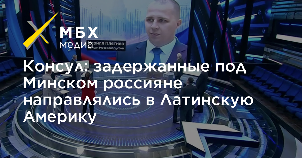 Задержанные в Белоруссии россияне находились в стране транзитом и собирались в Латинскую Америку, заявил консул России в Белоруссии Кирилл Плетнев в эфире телеканала «Россия-1».