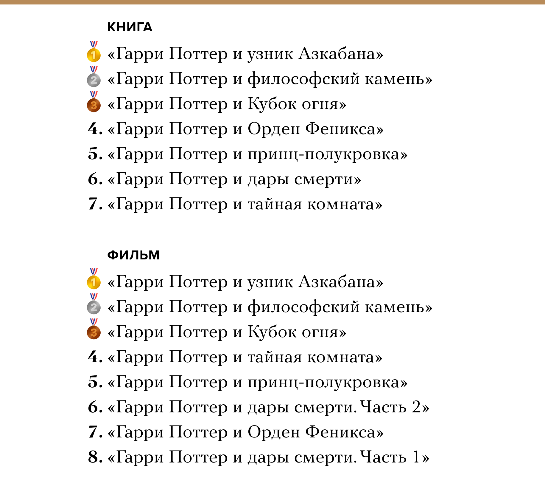 Дата04.08.2020АвторСкрытИсточникМедузаСохранённая копияInternet ArchiveOriginal MaterialShow translationВ честь 40-летия Гарри Поттера мы попросили читателей выбрать лучшую книгу и лучший фильм. Финальный рейтинг!В опросе приняли участие около 40 тысяч человек Фото в анонсе: Warner Bros / Mary Evans Picture / Scanpix / LETA