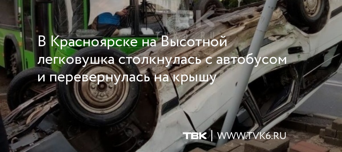 В Красноярске на Высотной легковушка столкнулась с автобусом и перевернулась на крышу