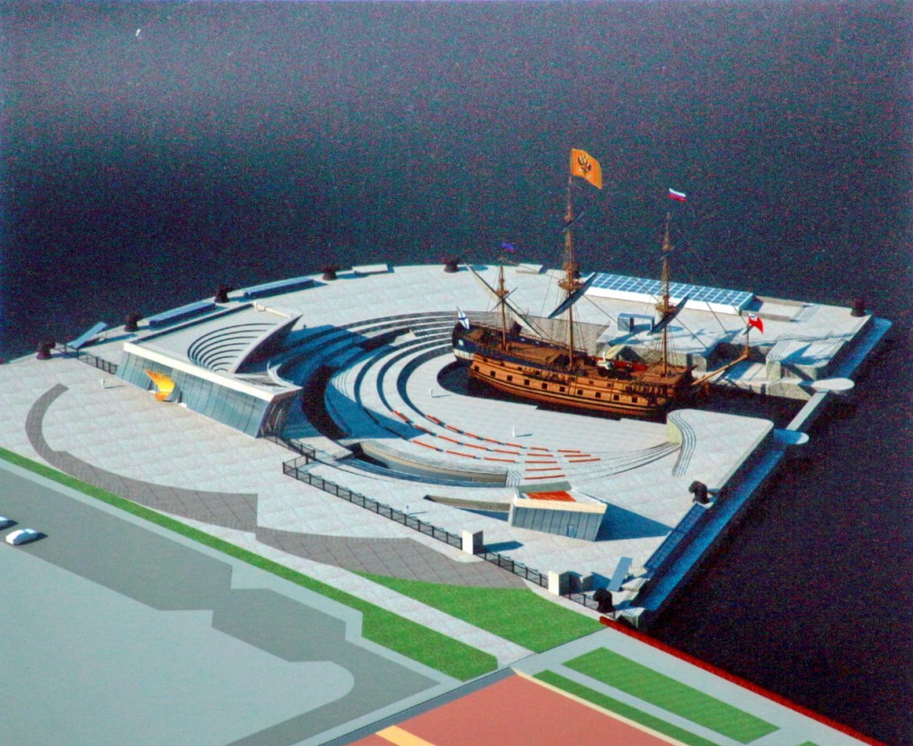 Центр будет представлять собой одноэтажное здание с подвалом, эксплуатируемой кровлей и двумя одноэтажными надземными павильонами. Кроме того, там должны появиться стоянка для воссозданного парусника «Полтава», причал, гидротехнические сооружения, а также сама «Полтава». Центр разделят на две части — открытую для посетителей и служебную. В первой разместят постоянную экспозицию и пространство для временных выставок, а также кафе и сувенирные магазины.