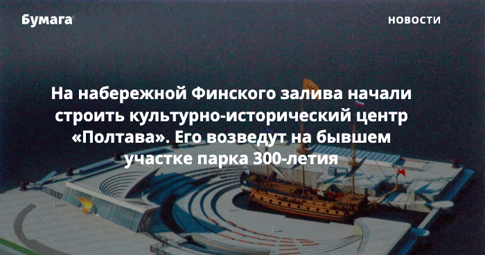 В акватории Финского залива и на бывшем участке парка 300-летия началось строительство культурно-исторического центра «Парусник „Полтава“». На это обратило внимание издание «Канонер».
