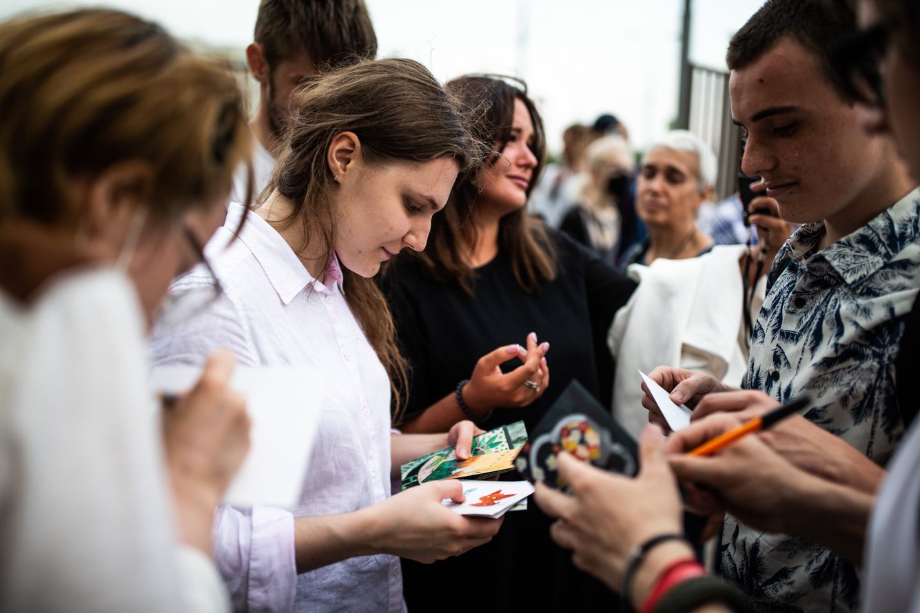 The reading of the verdict takes nearly four hours. The lawyers and the defendants have to stand the entire time, shifting from one foot to the other. On Telegram, lawyer Maxim Pashkov complains about the heat and the lack of air. On the street, police officers set up metal fences at the entrance to the courthouse. The people around the building — there’s now about 200 of them — chant “Not Guilty” and “We won’t forget, we won’t forgive.” You can’t hear their cries in the courtroom.