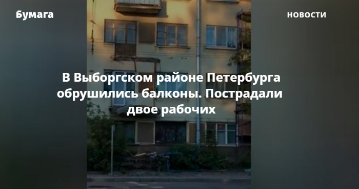 В Петербурге пострадали двое рабочих при обрушении балкона