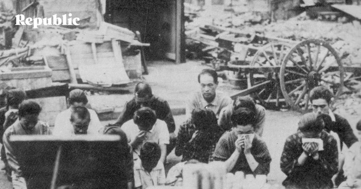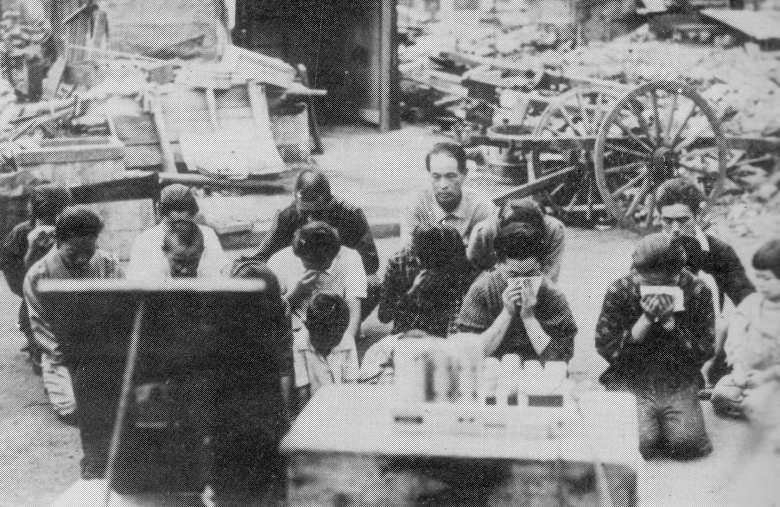 После Бомбы: подданные императора Хирохито слушают по радио его речь о принятии условий капитуляции Японии, 15 августа 1945 года