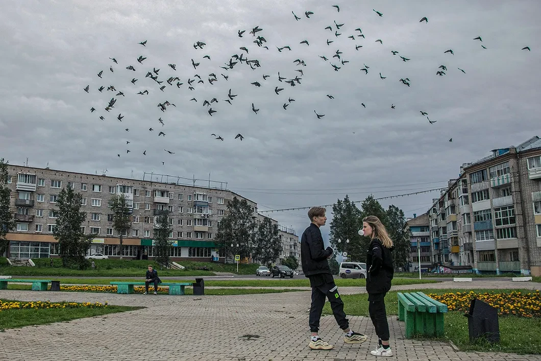 На скамейках-качелях на площади сидят подростки. Все одеты очень красиво и стильно, как и в самом Хабаровске. Кто-то «вейпит», из колонки играет композиция Тимы Белорусских. Девочки смеются над роликом в Youtube. У салона красоты с портретом Мэрилин Монро на витрине и яркой вывеской «Солярий» курят две девушки — мастера маникюра.
