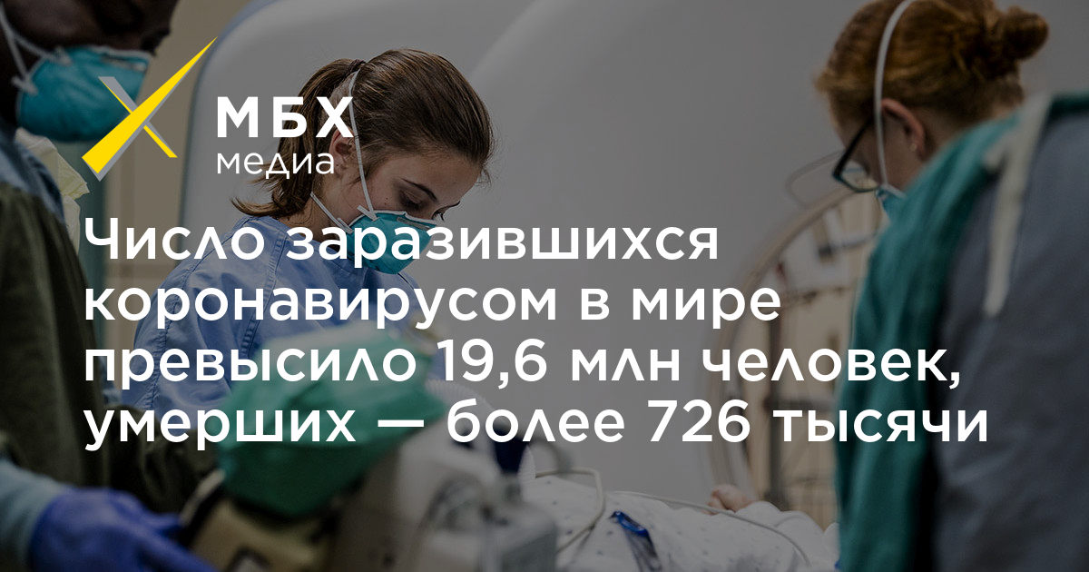 Число заразившихся коронавирусом в мире превысило 19,6 млн человек, умерших — более 726 тысячи
