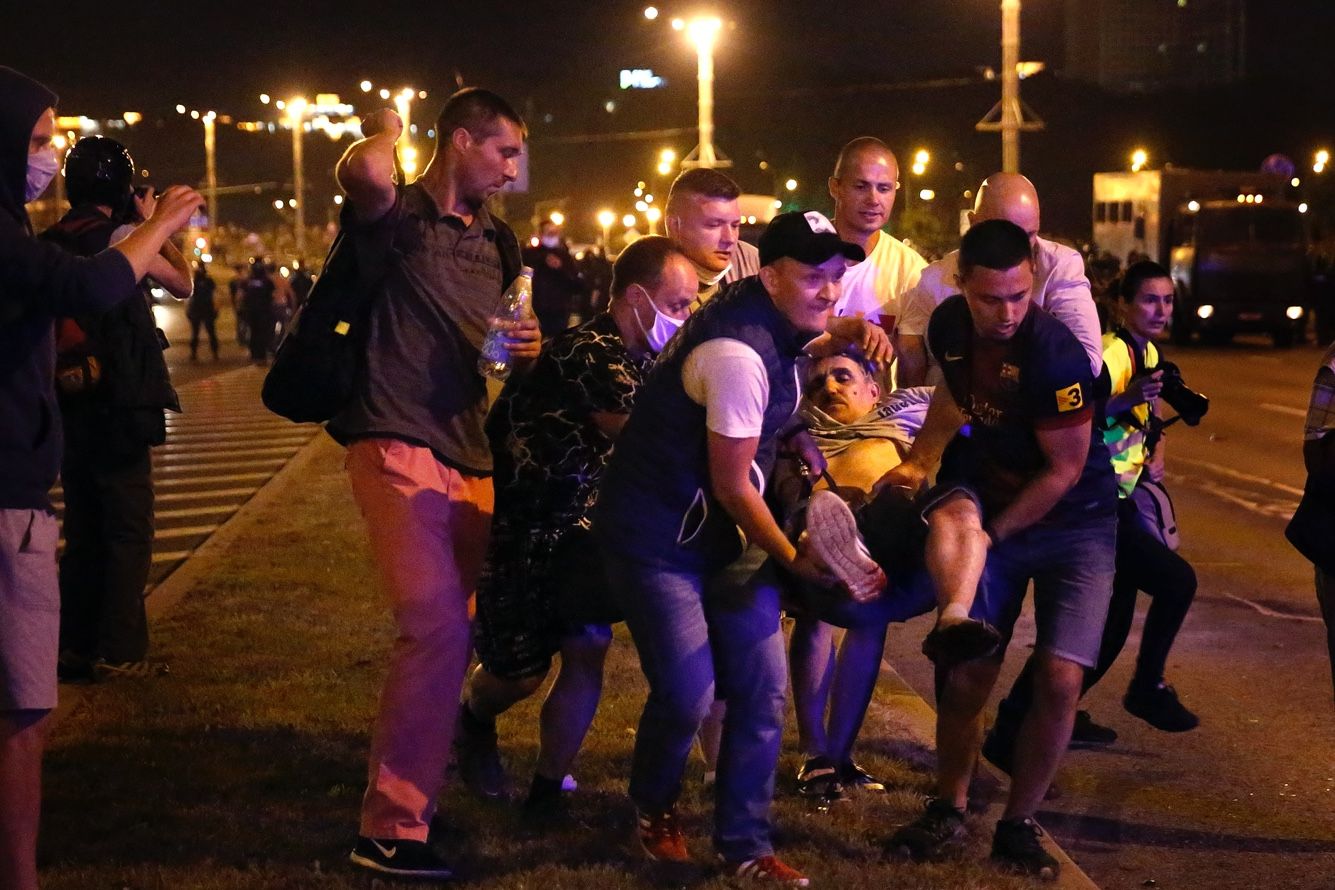 — Хотя официальных данных нет, по фотографиям уже ясно, что ранения от действий полицейских только в Минске получили десятки людей. У кого-то ранения от резиновых пуль, у кого-то оторваны пальцы и части конечностей от гранат. Как минимум одного человека сбил автозак. Есть сообщение об одном погибшем (но совсем без подтверждений).