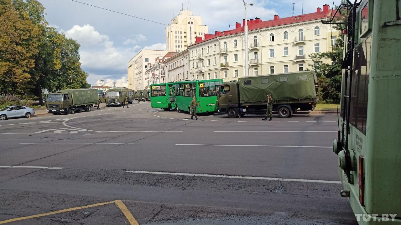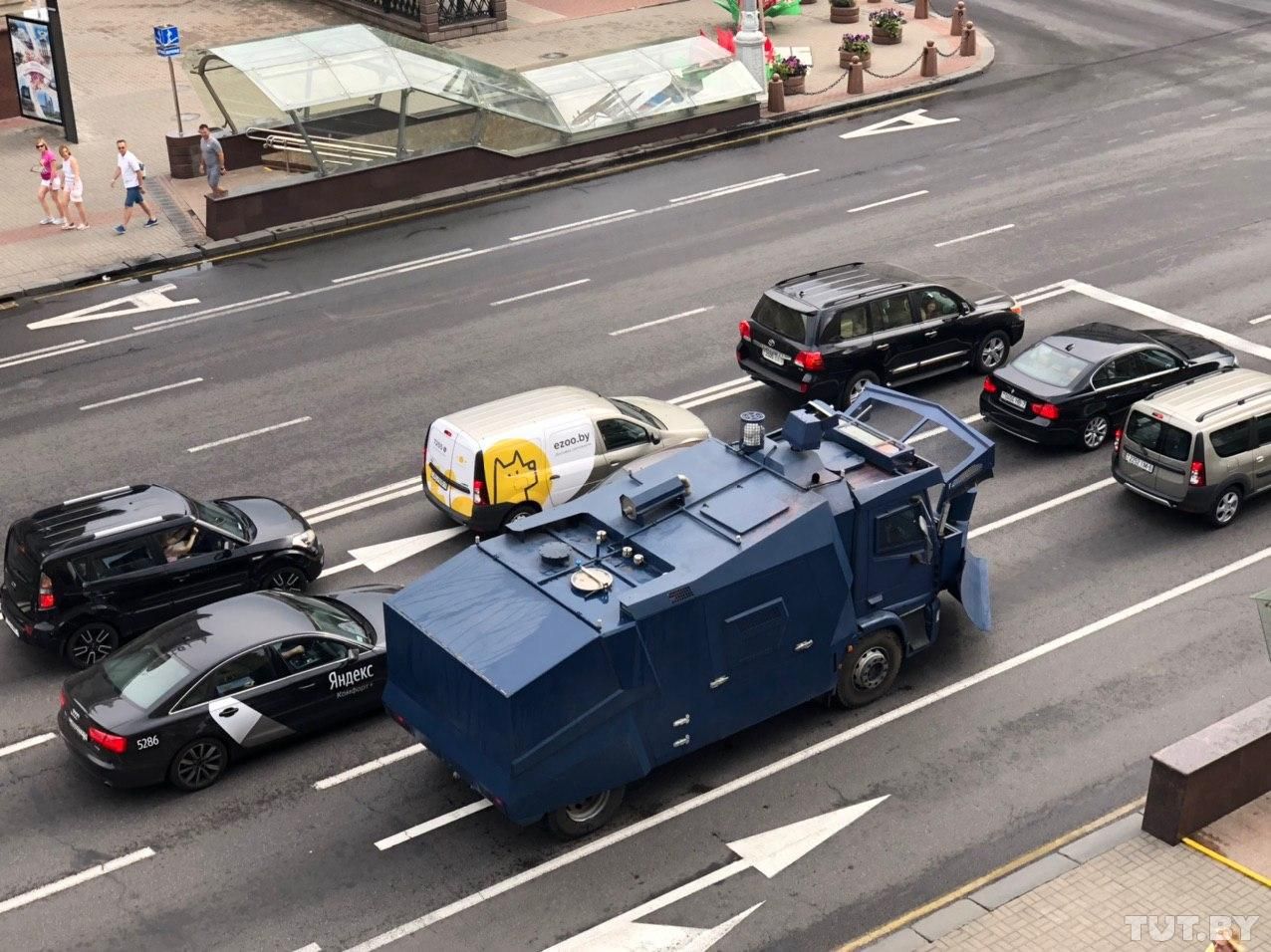 Белорусские силовики вовсю готовятся к протестам. На подъездах к городу очевидцы заметили бронетехнику, в городе — водометы и машины с колючей проволокой, на проспекте Независимости — милиционеров, которые готовятся перекрывать улицу.