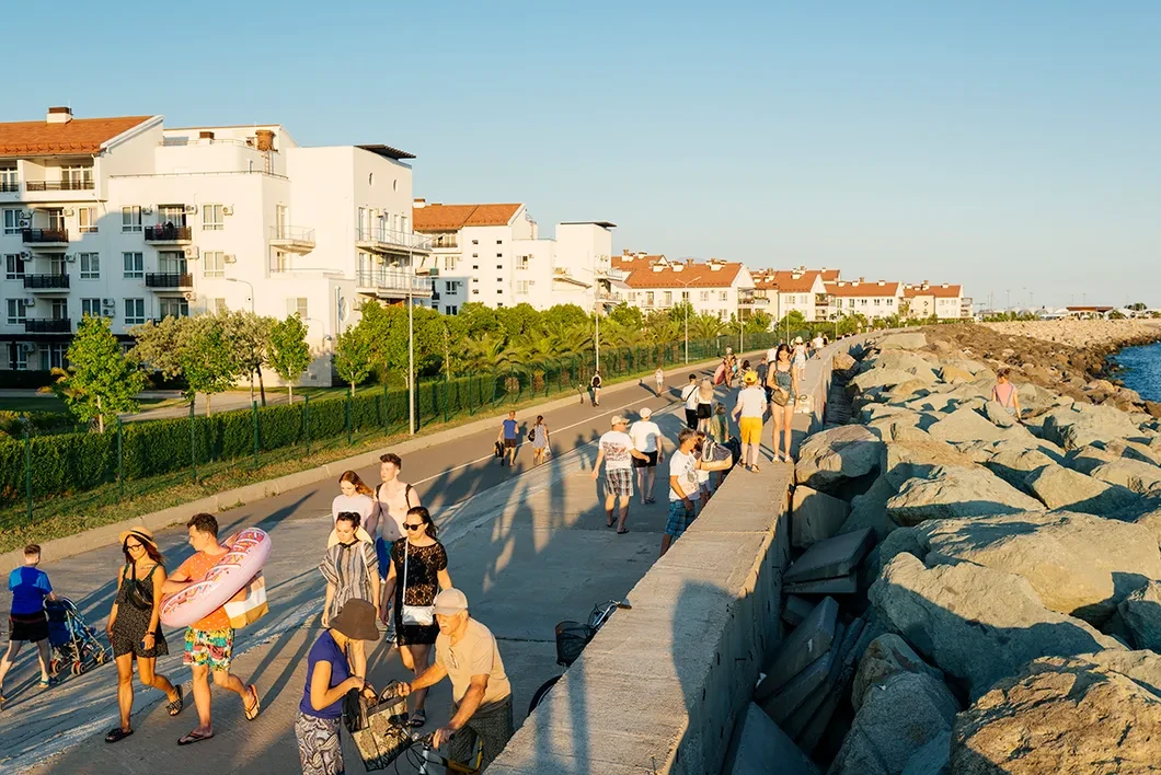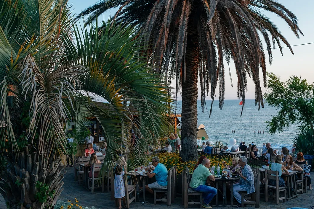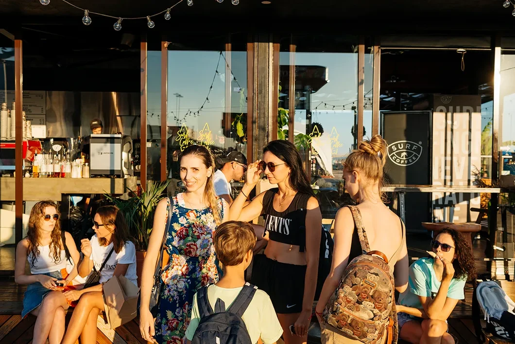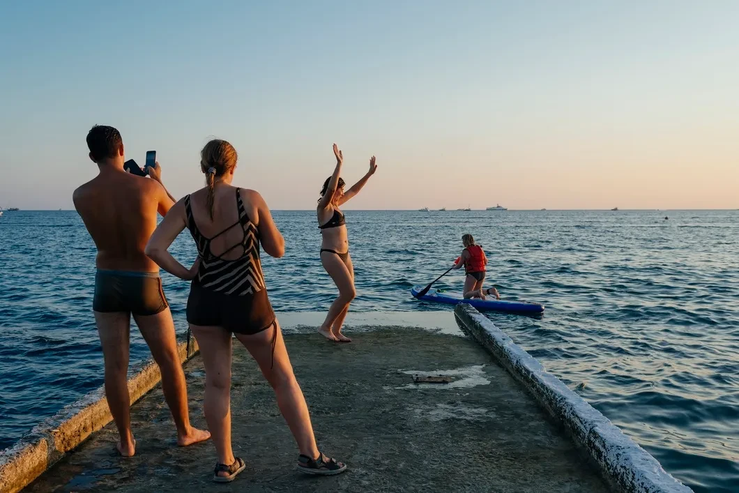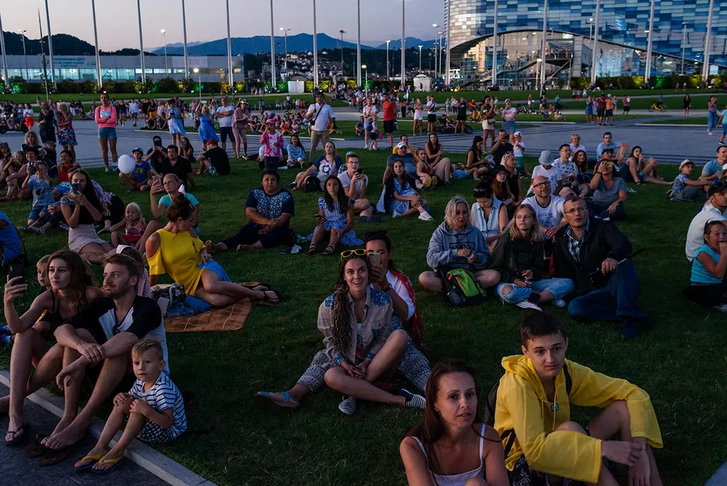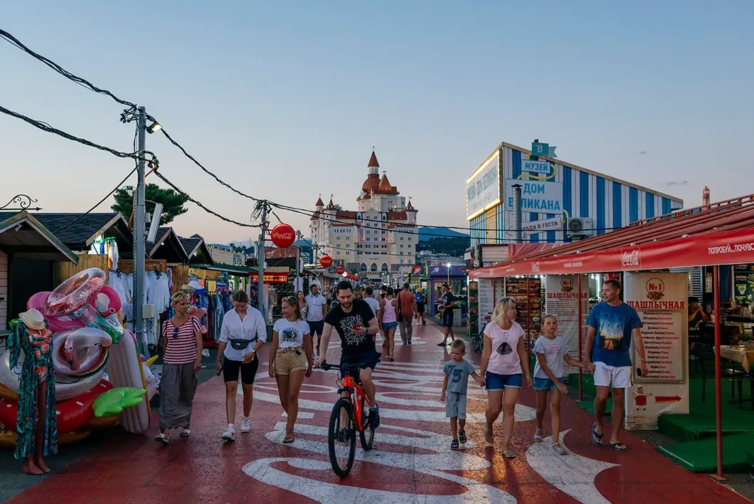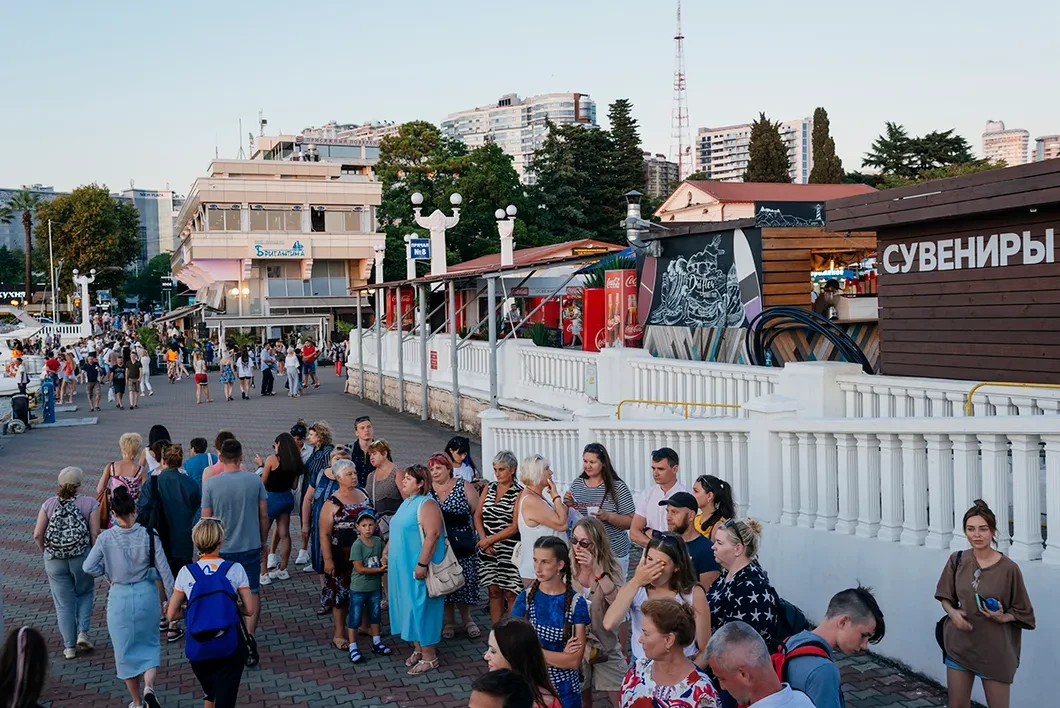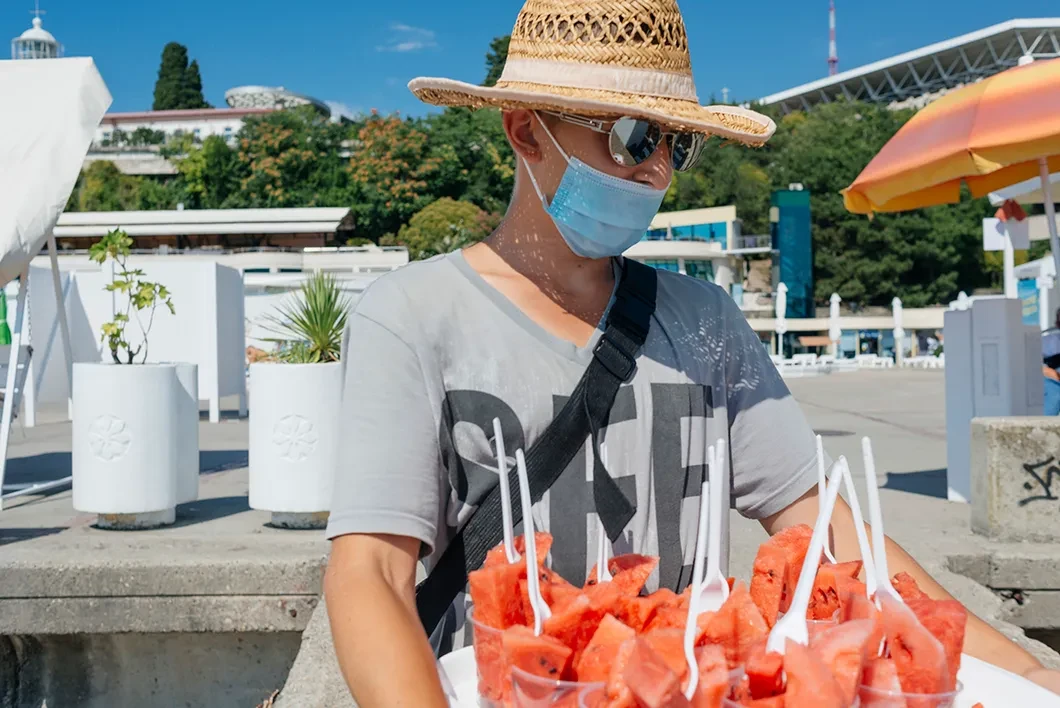 На пляже яблоку явно есть где упасть, кафе не забиты битком, а официанты успевают перекурить. Толп — в обычном понимании этого слова — нигде не найти. Но для ковидного мира видеть поток людей на набережной, скопление публики вечером в Олимпийском парке, занятые столы на 10 персон — более чем непривычно. Масок почти нет. Зато улыбок — море. Одни стараются урвать свою частичку счастья и солнца, другие этим готовы поделиться. За плату.
