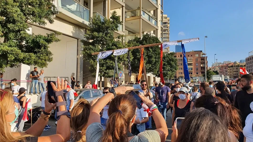 На Мартирс Скуэр, площади Мучеников, названной так в честь ливанских патриотов, казненных тут турками в ходе Первой мировой, митингующие установили виселицы и петли, на которых висели картонные фигурки, символизирующие видных ливанских политиков. «Это — знак того, что все они несут ответственность за смертельный взрыв в порту Бейрута», — сказал нам Махмуд Масри.