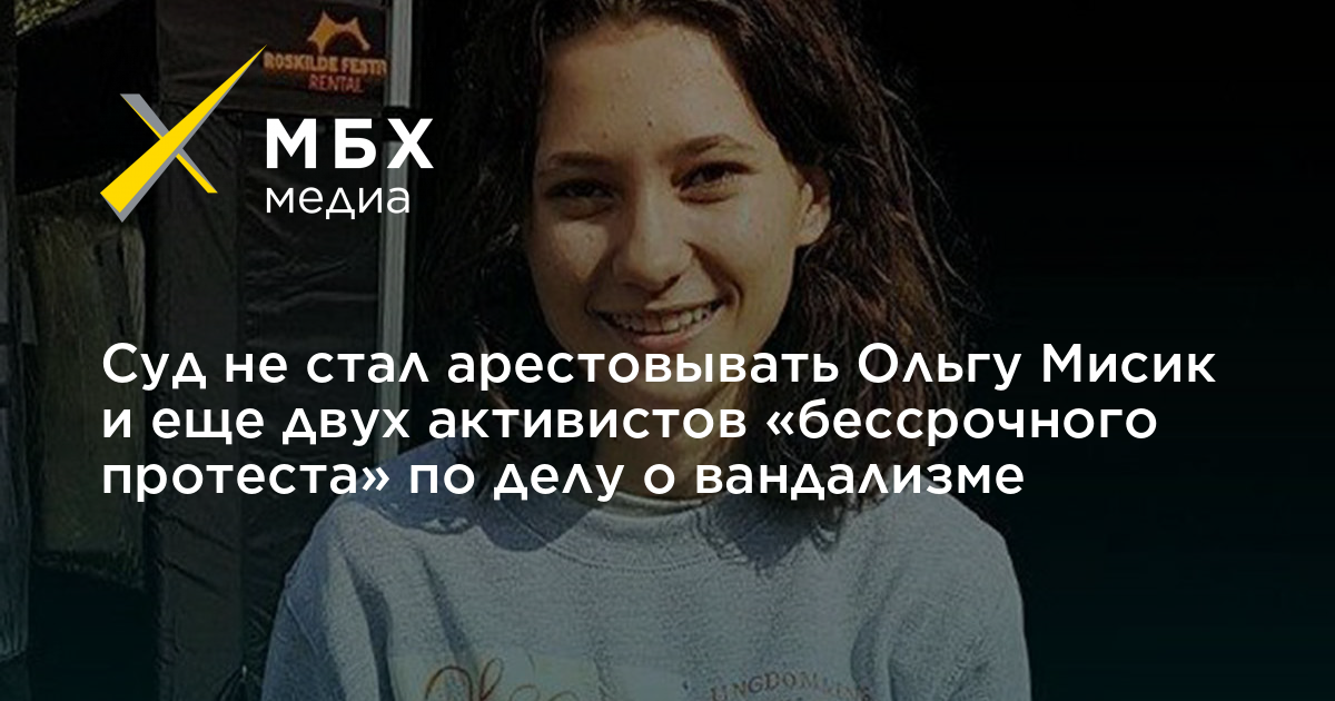 Тверской районный суд Москвы наложил запрет определенных действий на активистов «бессрочного протеста» Ивана Воробьевского, Ольгу Мисик и Игоря Башаримова в рамках уголовного дела о вандализме (ч. 2 ст. 214 УК), передает корреспондент «МБХ медиа».