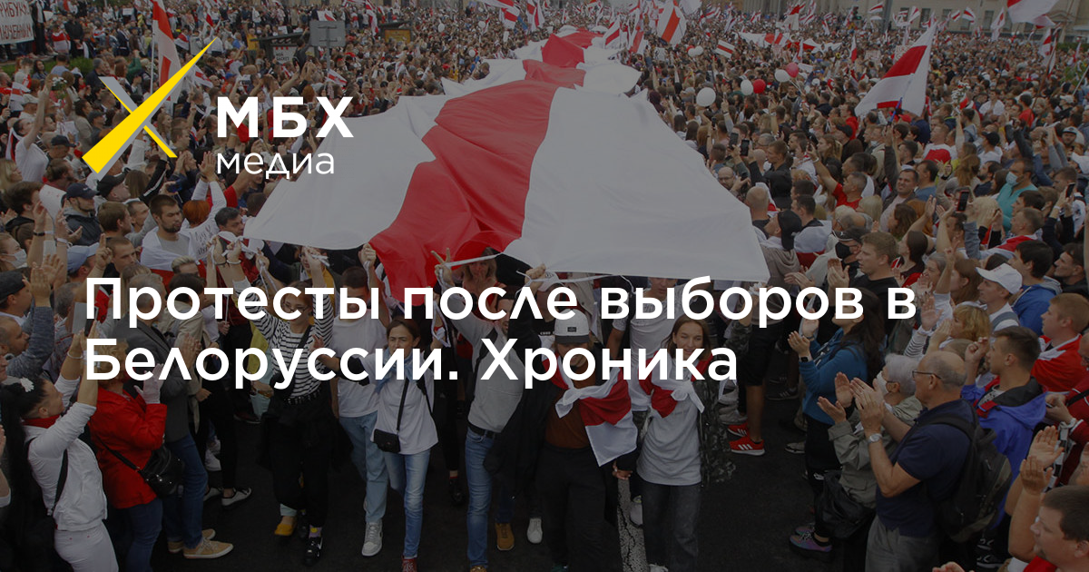 9 августа в Белоруссии прошли выборы президента. Действующий глава государства Александр Лукашенко выдвигался на шестой срок. Его главный оппонент — Светлана Тихановская. Она стала кандидатом после того, как ее муж, известный в республике блогер Сергей Тихановский, оказался в СИЗО по сфабрикованному обвинению. Избирательная кампания сопровождалась задержаниями оппозиционных политиков и активистов, а также многотысячными акциями протеста по всей стране, которые продолжаются уже больше месяца. «МБХ медиа» ведет хронику протестов.