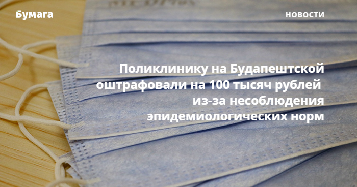 Поликлинику на Будапештской оштрафовали на 100 тысяч рублей из-за несоблюдения эпидемиологических норм