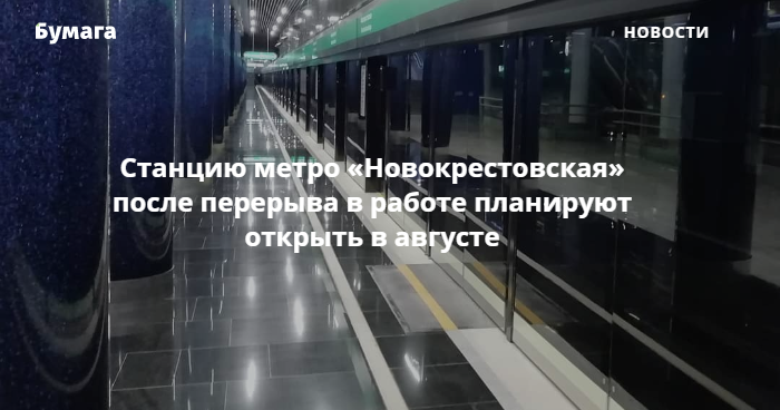 «Новокрестовскую» планируют открыть после ремонта в августе 2020 года. Об этом сообщает «Петербургский дневник» со ссылкой на пресс-службу метрополитена. По данным издания, открытие может состояться 19 августа — к матчу «Зенита» и ЦСКА.