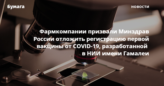 Фармацевтические компании призывают Минздрав «не форсировать разработку» вакцины, так как в мире сейчас насчитывается 26 разработок, шесть из которых тестируются с участием тысяч и десятков тысяч человек. В обращении подчеркивается, что ускоренная регистрация может подвергнуть опасности граждан России.