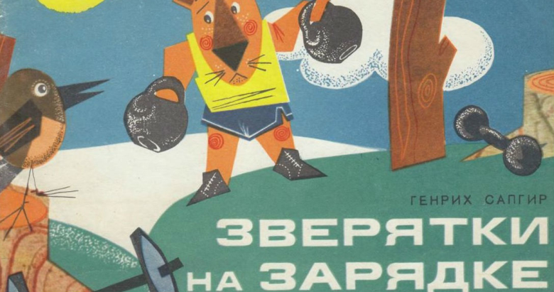 Обложка книги Генриха Сапгира "Зверятки на зарядке". Художник Иосиф Оффенгенден, 1970