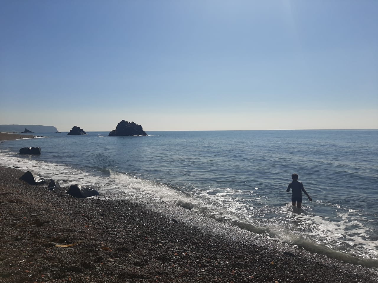 Мы не жаловались. Ослепительные, совершенные виды Трех братьев, скал, ставших неофициальным символом Сахалина, закутанные в зеленый плюш сопки, ветшающий, но такой красивый маяк на мысе Жонкиер, прозрачная вода и галечный пляж стоят испорченных кроссовок.