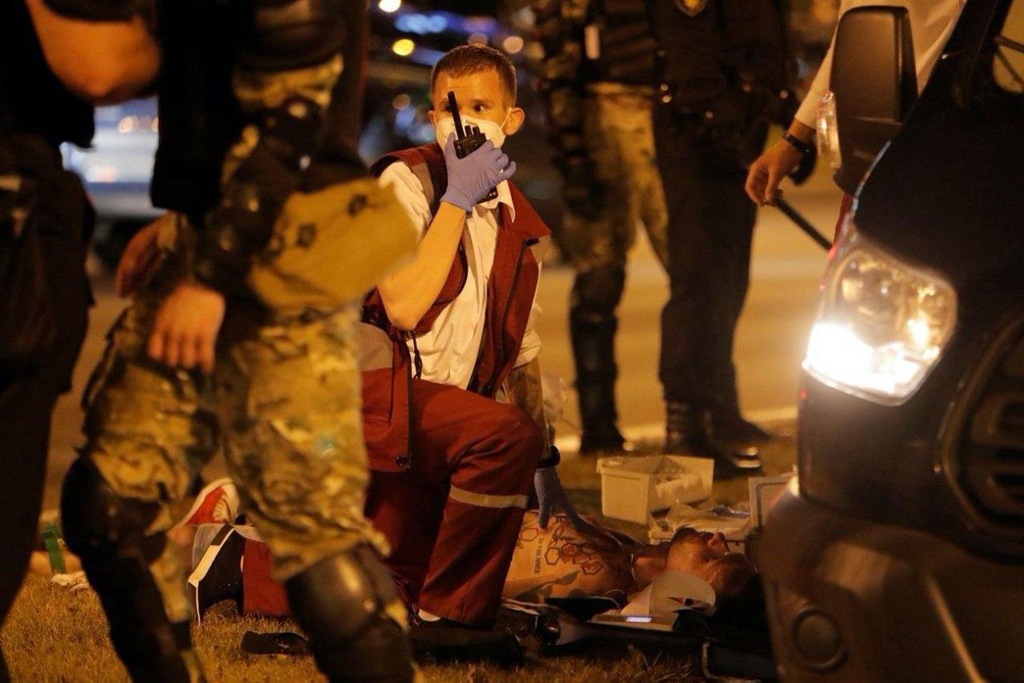 NEXTA опубликовала видео из Минска, на котором толпа ОМОНа бросается на сидевших на лавочке парня и девушку. Они жестоко избивают их со словами: «Дома сидеть надо» и «Вот вам и перемены, *****». Еще один жестоко избитый протестовавший, по данным NEXTA, скончался — издание опубликовало его фотографии с места трагедии.