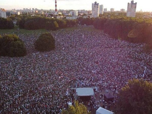 Оппозиционный предвыборный митинг в Минске 30 июля 2020 года Evraz2020 / wikimedia По предварительным данным ЦИК Белоруссии, на выборах президента Лукашенко набрал более 80% голосов, а Тихановская получила чуть более 10%. Однако результаты выборов вызвали массовые протесты.