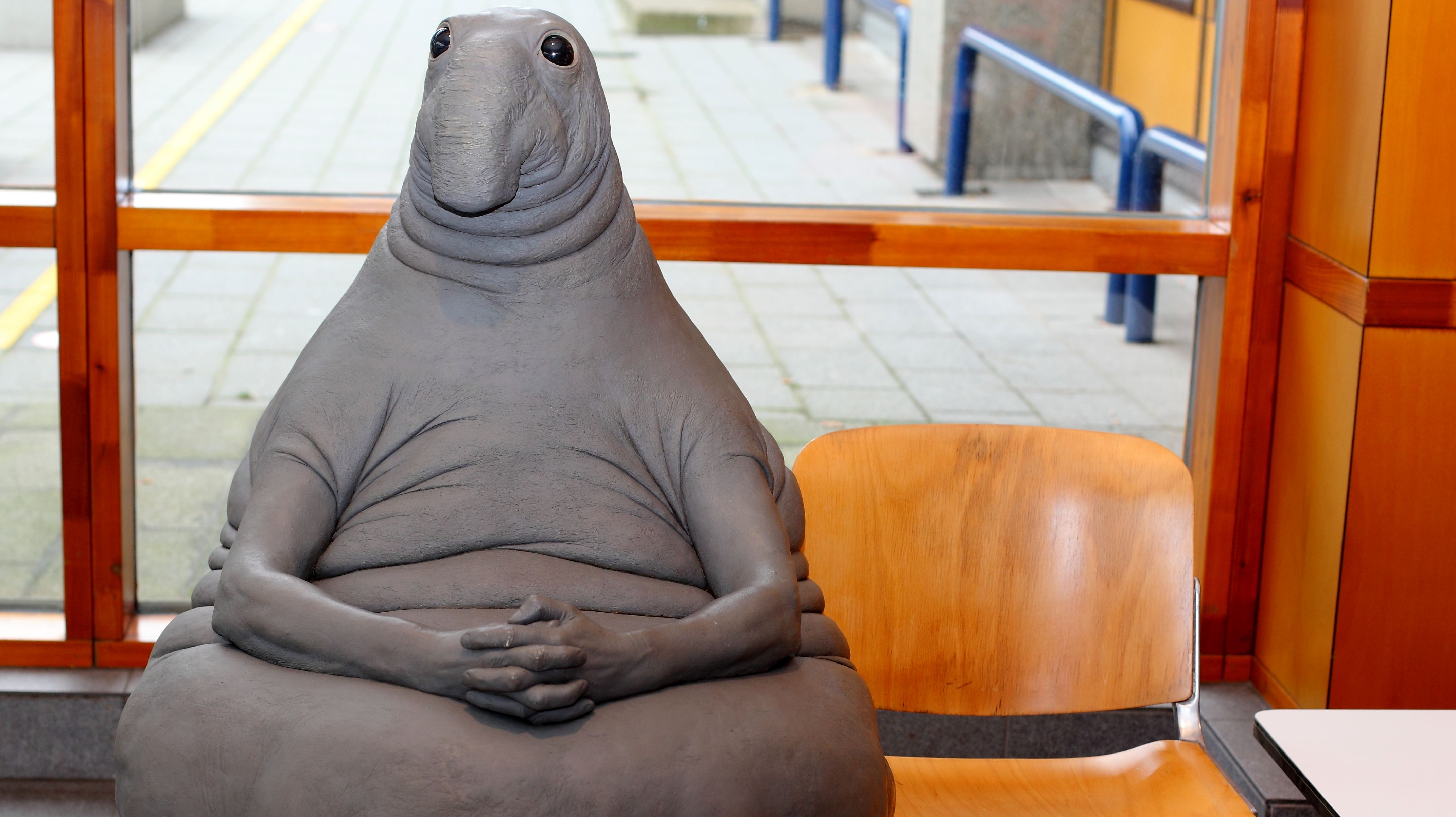 "Ждун" – скульптура художницы из Нидерландов Маргрит ван Брифорт. Она создала его в 2016 году под латинским названием Homunculus loxodontus. Вымышленный персонаж имеет голову морского слона, тело личинки с руками человека.