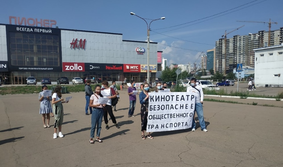 В Улан-Удэ 11 августа на пикет вышли работники кинотеатров. Они возмущены тем, что глава республики Алексей Цыденов давно разрешил работу заведениям общепита, но по-прежнему запрещает возобновлять работу кинотеатров.