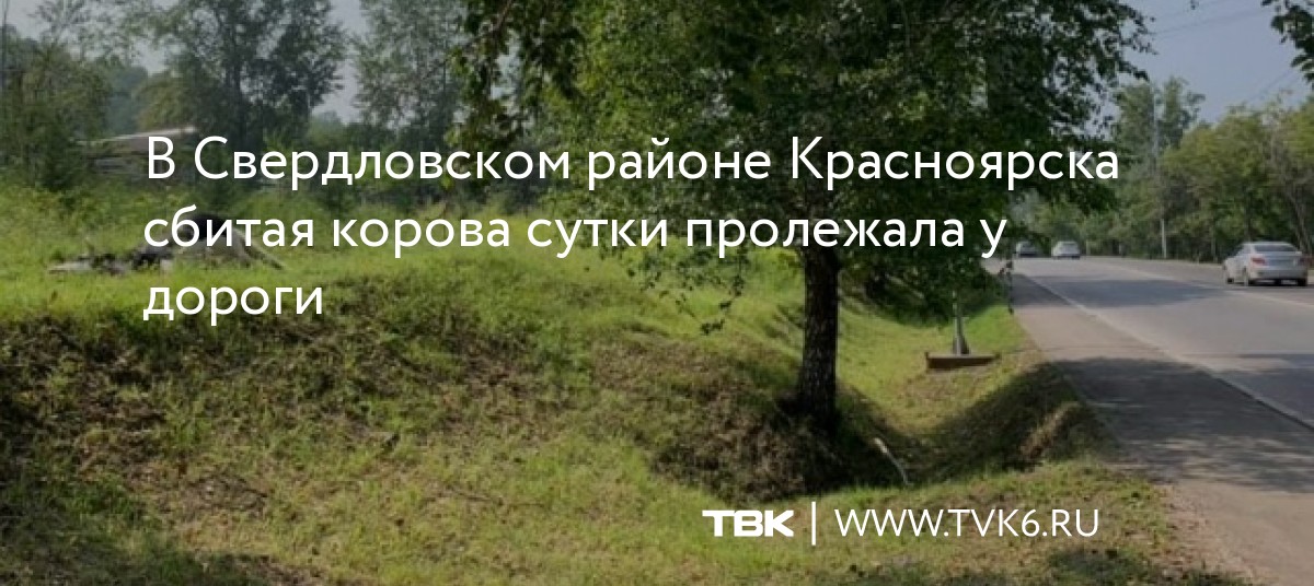 В Свердловском районе Красноярска сбитая корова сутки пролежала у дороги
