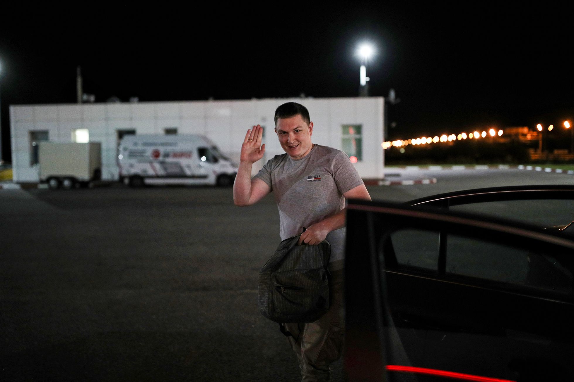 Специальный корреспондент «Медузы» Максим Солопов был задержан в ночь на 10 августа в центре Минска, где после президентских выборов проходили массовые протестные акции. Во время задержания его избили, а потом почти двое суток держали в изоляции от внешнего мира. Установить его точное местонахождение редакции не удавалось. Около восьми вечера 11 августа Солопова отпустили из изолятора на улице Окрестина в Минске и передали сотрудникам посольства России в Белоруссии. Ночью сотрудники посольства привезли Солопова на границу России, сейчас он находится в Москве. По просьбе «Медузы» в Смоленской области Максима Солопова встретил журналист Евгений Фельдман — он его сфотографировал, а также взял у него интервью.