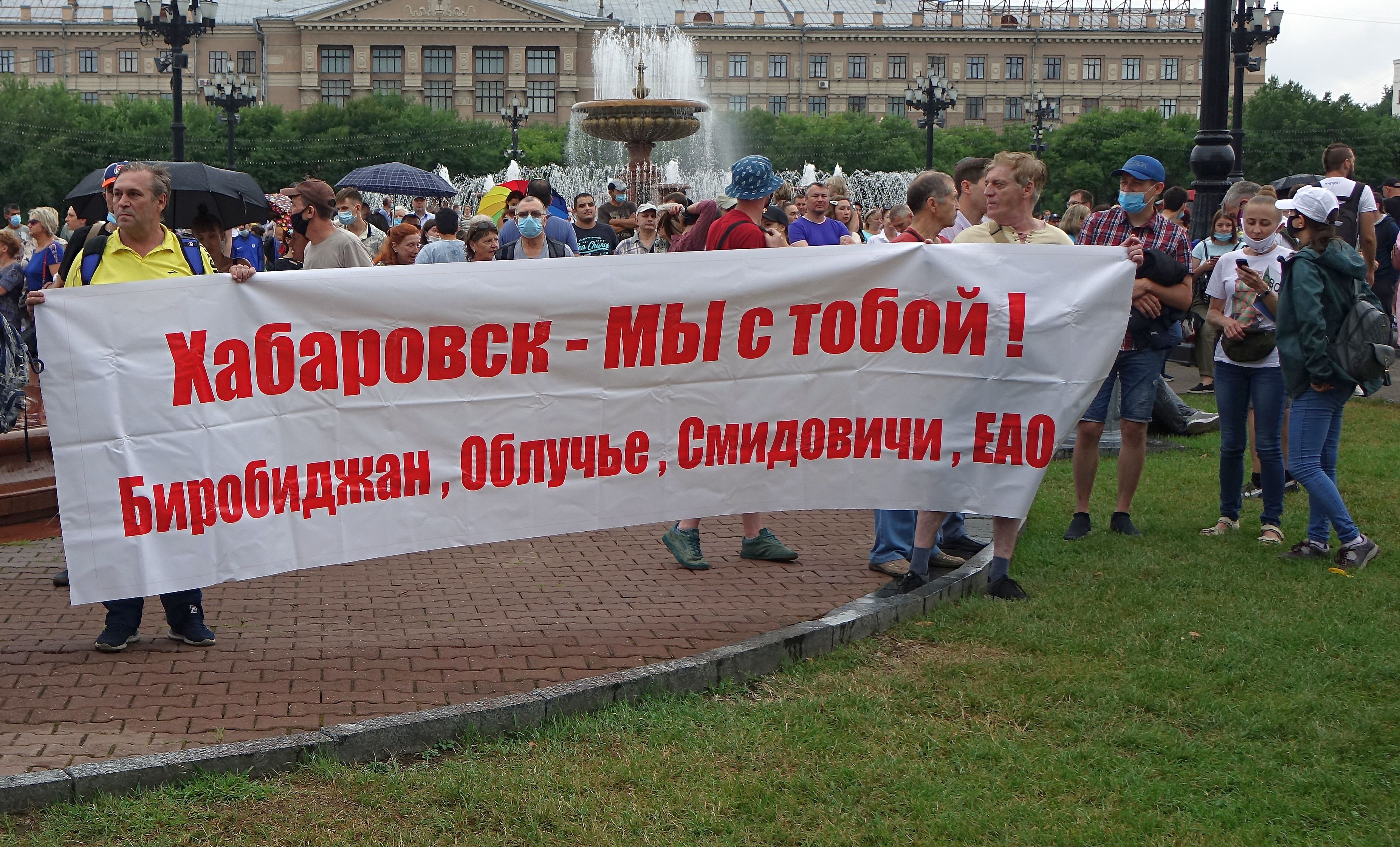- После задержания избранного губернатора края Сергея Фургала в Хабаровском крае и соседних регионах с 11 июля каждый день проходят массовые митинги и пикеты. Чаще всего митингующие требуют для губернатора "справедливого суда в регионе". С 22 июля после назначения нового врио главы края Михаила Дегтярёва митингующие потребовали отставки президента России Владимира Путина.