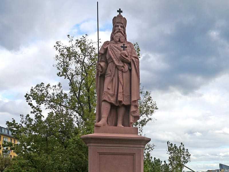 Эта трехметровая статуя Карла Великого (747-814) весом 5 тонн из красного песчаника была установлена в 2016 году. Она является копией оригинального памятника могущественному королю франков, стоявшего на мосту в 1843-1914 годах, пишет DW. На установку памятника собрали 110 тыс. евро пожертвований.