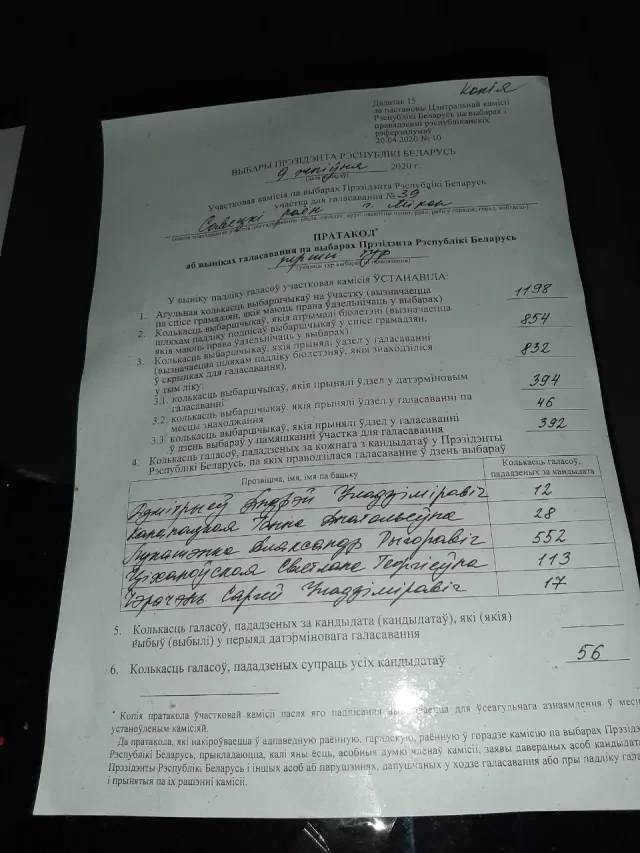 Чтобы защитить свой реальный выбор, белорусы не только выходят на улицы, но и пытаются организовать «народный Центризбирком» — ведут подсчет голосов своими силами. Собрать полные данные по всей стране невозможно, однако даже доступная часть протоколов показывает, что участковые комиссии «рисовали» спущенные сверху результаты во время досрочного голосования.