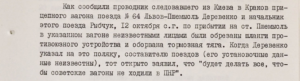 Польские железнодорожники якобы портили советские вагоны и специально нарушали меры безопасности движения прибывших с востока поездов.