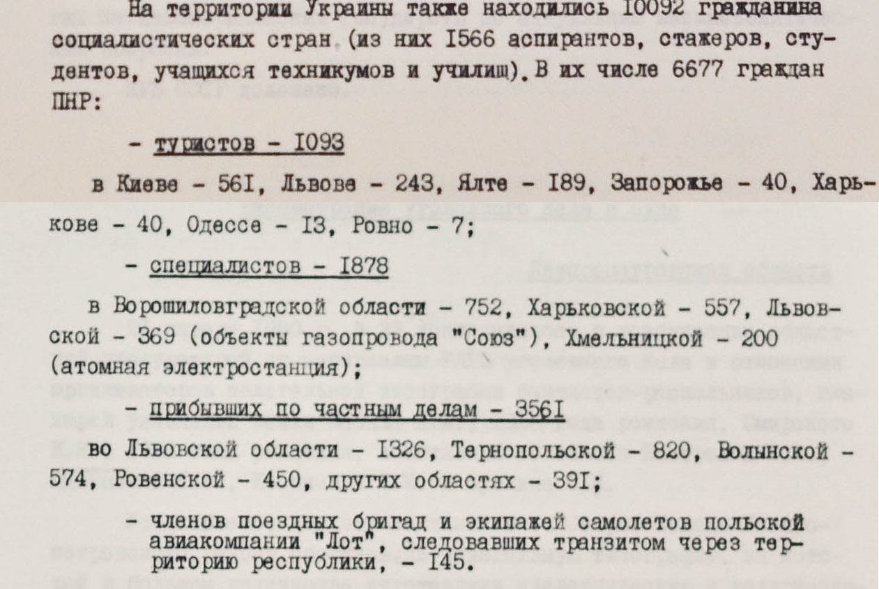 Первая докладная записка КГБ УССР «об обстановке в республике в связи с событиями в Польше» была подписана 23 августа. С конца месяца количество поляков на подведомственной территории .