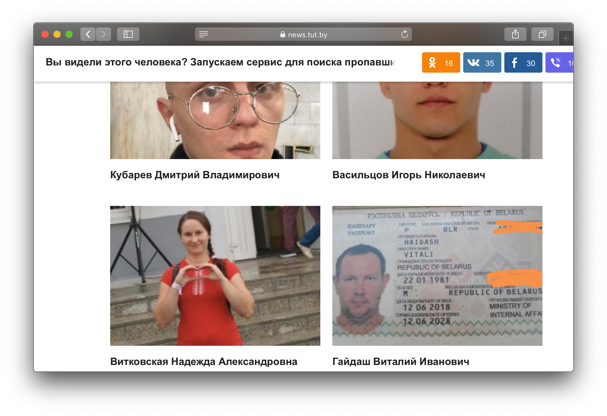 The news outlet Tut.by has launched an online service to help Belarusians locate people who have gone missing at protests this week. The site is only just getting started. Currently, there’s information for only 18 people, but anyone can add updates for their own friends and family.