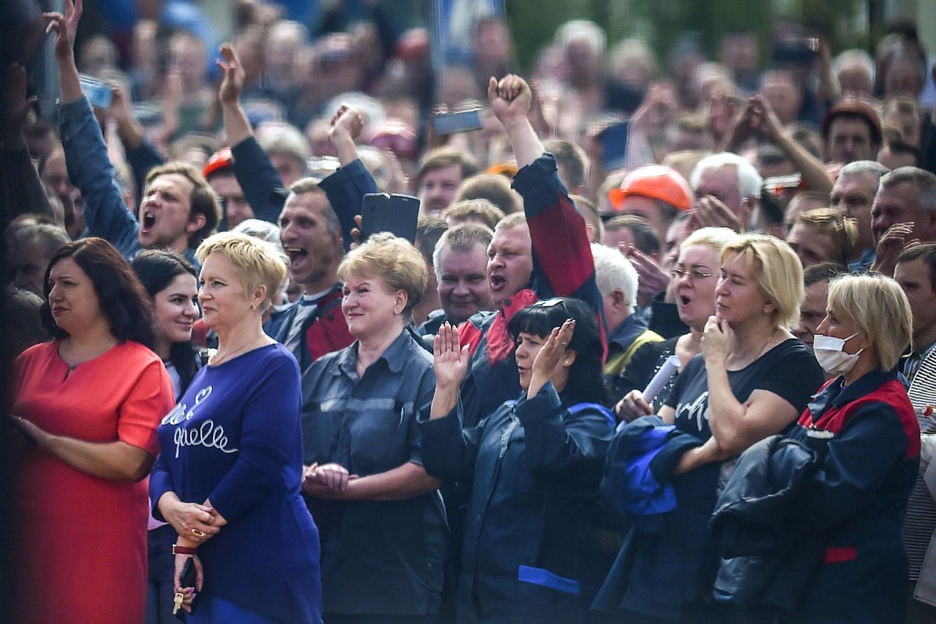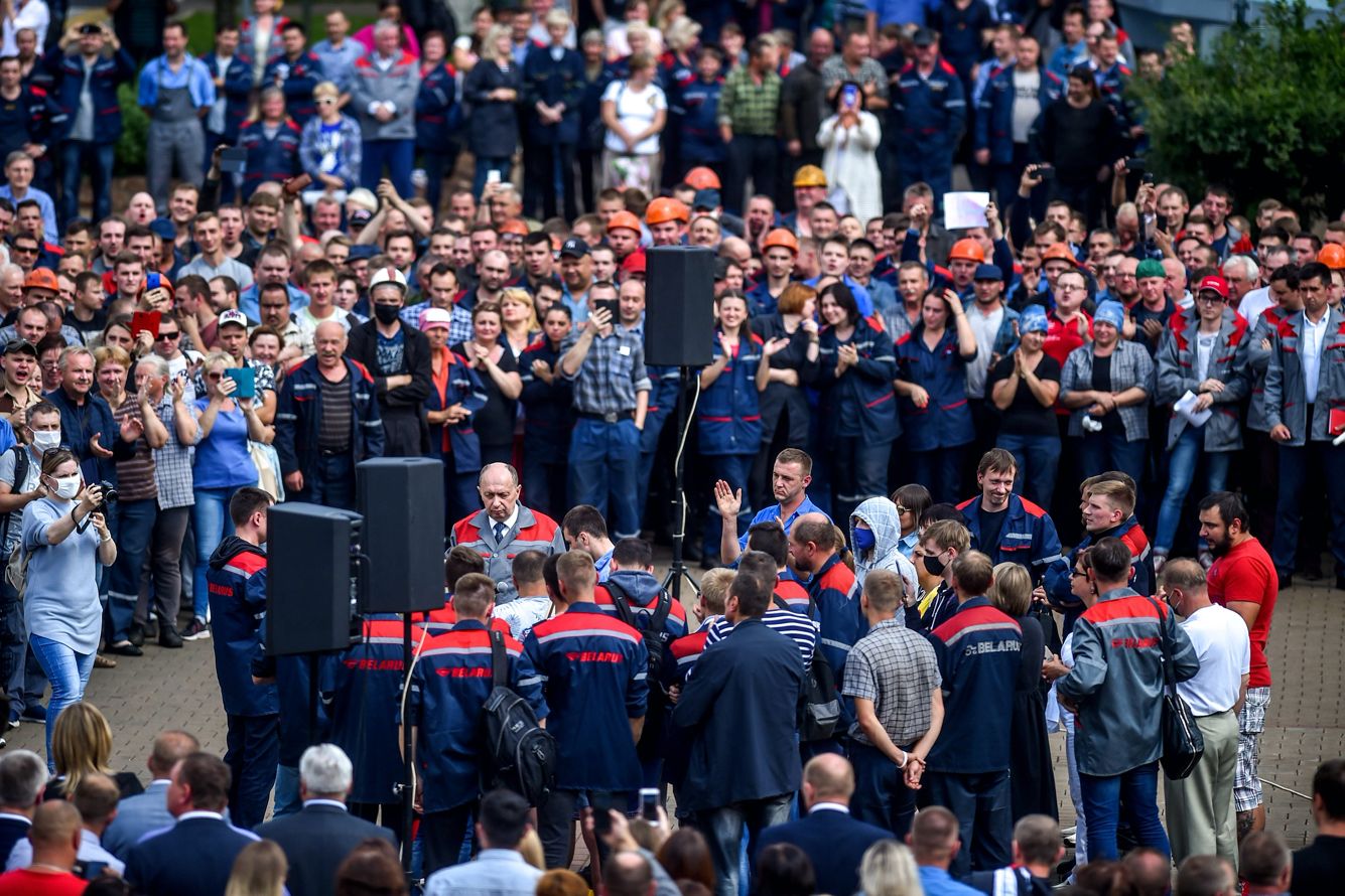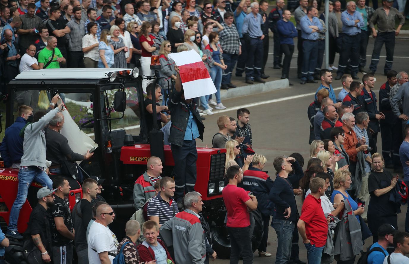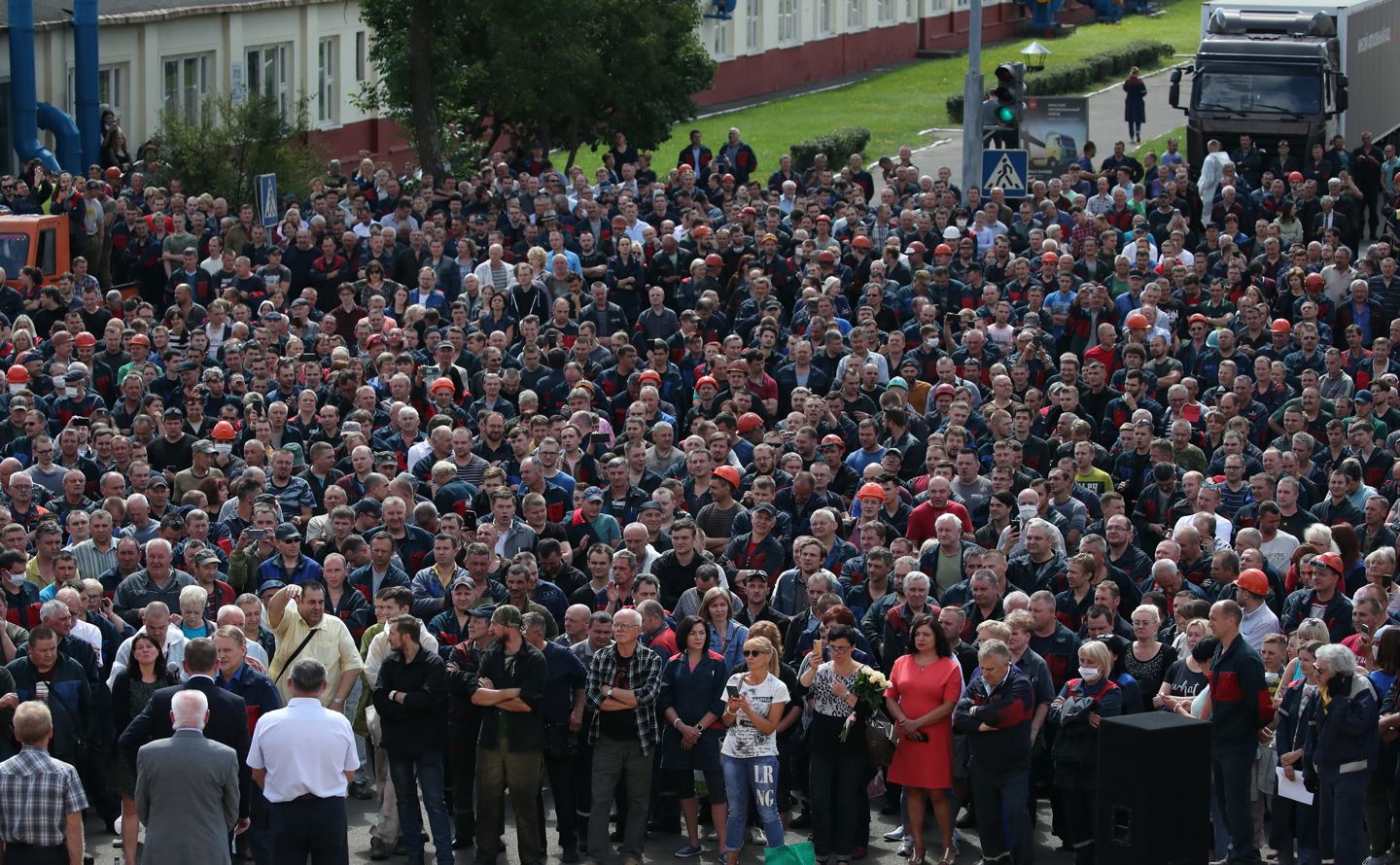 On Friday, August 14, workers at major enterprises across Belarus held rallies demanding a review of the voting results from last week’s presidential elections, which, according to election officials, saw incumbent President Alexander Lukashenko (Alyaksandr Lukashenko) win 80 percent of the vote. The protesting workers are also demanding the release of everyone arrested during this week’s street protests and an end to the use of violence against demonstrators. Strikes are now taking place at the Atlant and Gefest appliance manufacturers, as well as at the Milavitsa clothing factory, the Grodno meat-packing plant, the Minsk Automobile Plant (MAZ), and the Minsk Tractor Works (MTZ). At a meeting earlier today, Lukashenko said that “there was only one example at MAZ and MTZ: there, 20 people decided to express their opinion and walked off the job. The production head says: fine, go guys, I’ve got enough people, all these people’s salaries. They turned around and went back to work.” In reality, the workers’ rallies look quite different.
