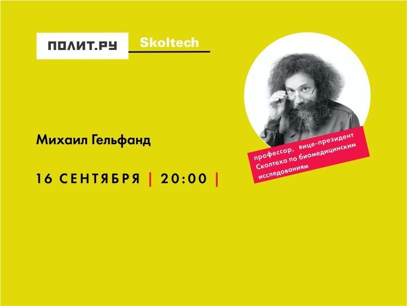 В совместном проекте «Лекторий Cколтеха в Полит.ру» — Михаил Гельфанд, доктор биологических наук, профессор, член Европейской Академии, вице-президент Сколтеха по биомедицинским исследованиям и заведующий лабораторией в Институте проблем передачи информации им. Харкевича РАН.