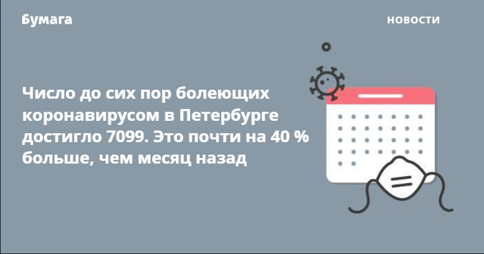 Актуальные новости о распространении COVID-19 в городе читайте в рубрике «Бумаги» «Коронавирус в Петербурге».